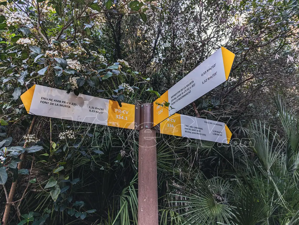 En esta ocasión ascendemos a uno de sus puntos más representativos: la Creu del Cardenal. Lo hacemos mediante una variante del sendero PR-CV 334, incorporando un tramo previo por la senda histórica SL-CV 82 del valle de la Murta, una opción que consideramos muy recomendable, especialmente para quienes visitan el paraje por primera vez.